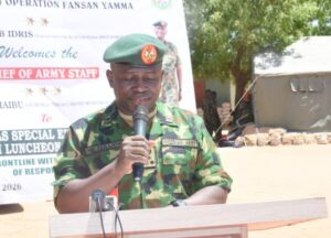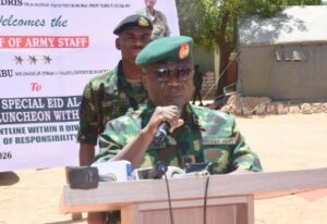 The Chief of Army Staff, Lieutenant General Waidi Shaibu, has reaffirmed the Nigerian Army’s commitment to the welfare and morale of its frontline troops, as he hosted a Special Eid-el-Fitr Sallah Luncheon for troops operating in 8 Division Area of Responsibility under Operation FANSAN YAMMA.